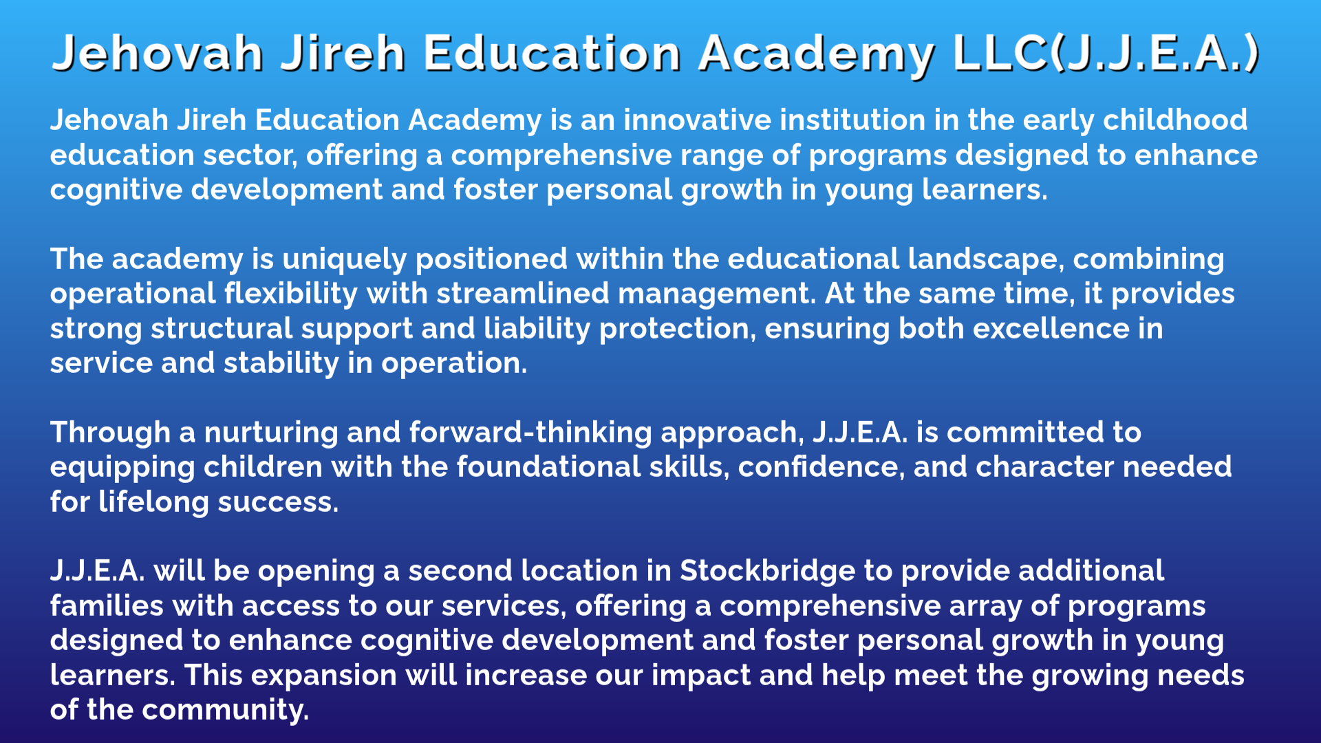 “The new facility will enable JJEA to expand its service offerings by providing high-quality after-school programs, personalized tutoring, and comprehensive youth development initiatives. These programs are designed to equip young people with the academic skills, confidence, and leadership abilities needed to become active, engaged contributors within their local communities.”